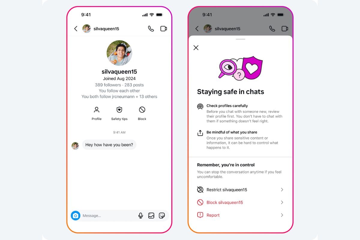 Both of these new safety features are available in Instagram DMs. The first one will show teenagers safety tips when they are about to text another user, even if they both follow each other. These tips ask the teenager to check the other person’s profile carefully, and that they “don’t have to chat with them if something doesn’t feel right.” It also reminds underage users to be mindful of what they share with others.